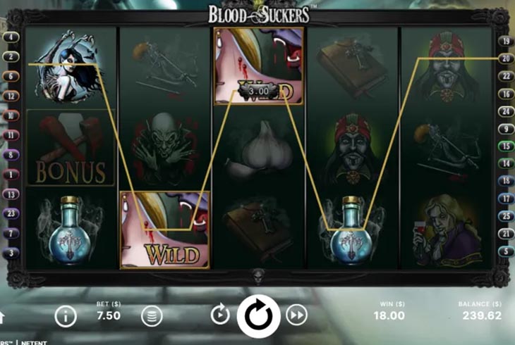 Blood Suckers od NetEnt to automat online, który od lat uznawany jest za jedną z najbardziej dochodowych gier w Polski kasyna z licencjami. Ciemny klimat, inspirowany legendami o wampirach, łączy się tu z wysokim RTP 98% i klasycznymi funkcjami bonusowymi.