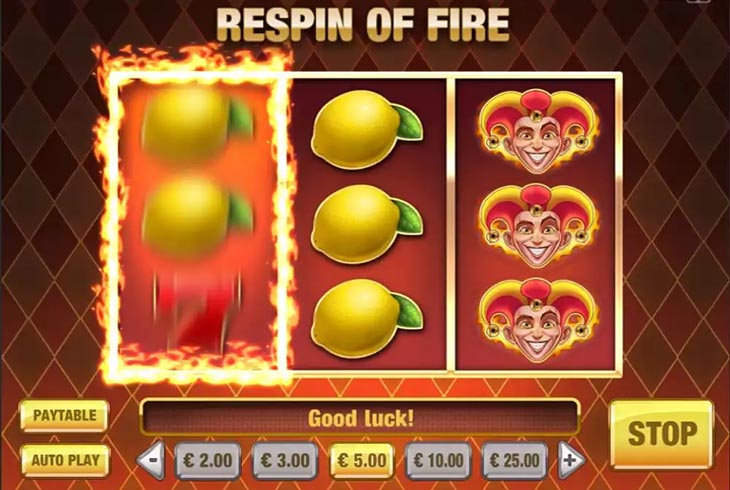 Re-spin of Fire - gdy na dwóch bębnach widać ten sam symbol, a trzeci jest inny, gra daje dodatkowy respin, który może domknąć układ;