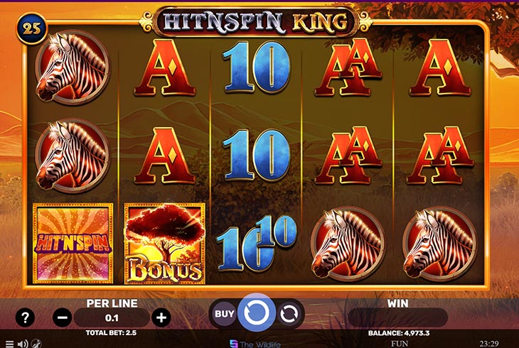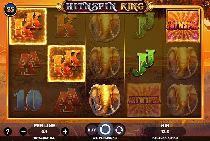 Hitnspin King slot wykorzystuje układ 5×3 z ustaloną liczbą linii wypłat. Aby wygrać, wymagane są trzy identyczne symbole na sąsiednich bębnach. Symbole podzielono na: